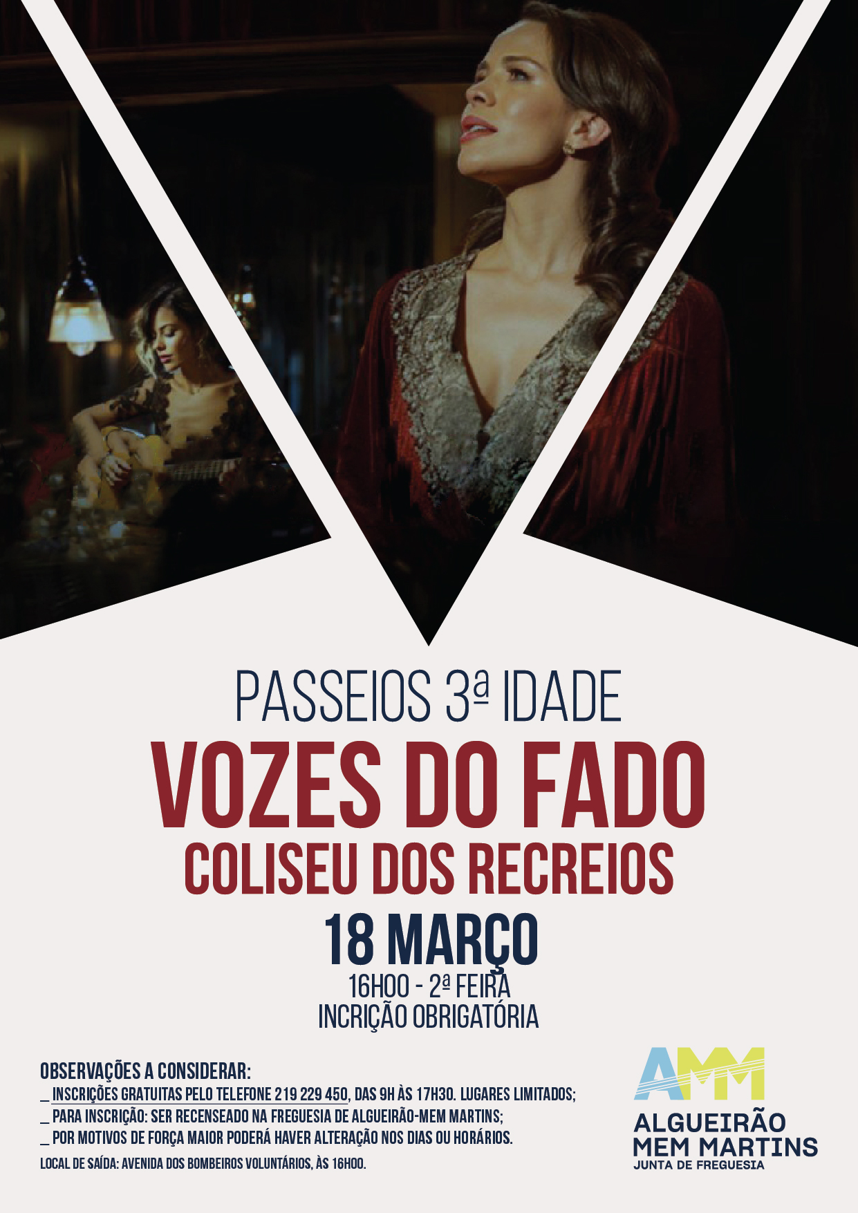 Dia 18 de março, segunda-feira, a JFAMM vai realizar um passeio ao Coliseu dos Recreios (Lisboa), para assistir ao espetáculo Vozes do Fado .