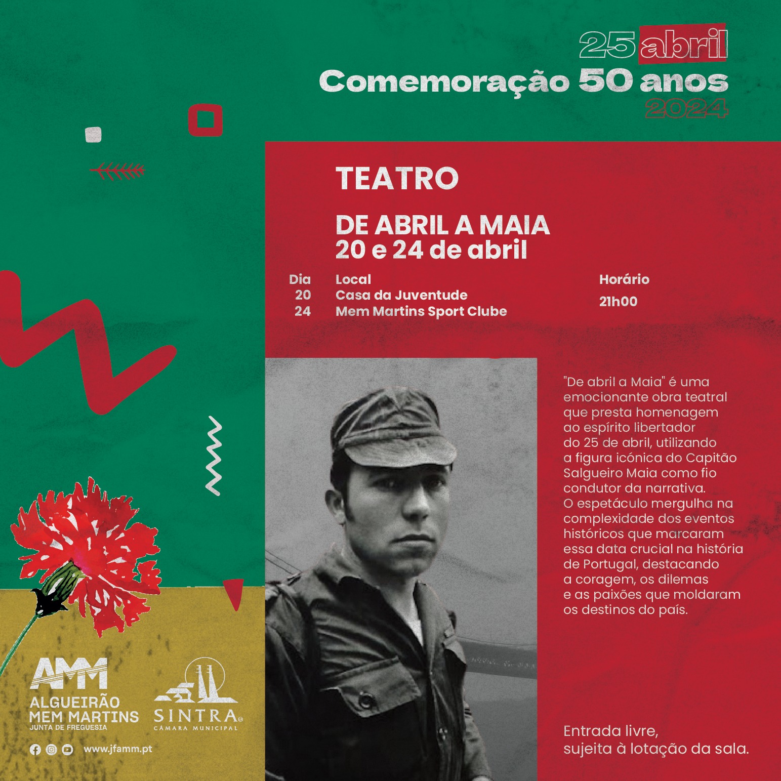 A JFAMM convida a reviver o 25 de abril através de uma experiencia cénica intensa e inspiradora, “De abril a Maia”, pelo byfurcação teatro , uma obra teatral que presta homenagem ao espírito libertador do 25 de abril, utilizando a figura icónica do Capitão Salgueiro Maia como fio condutor da narrativa.