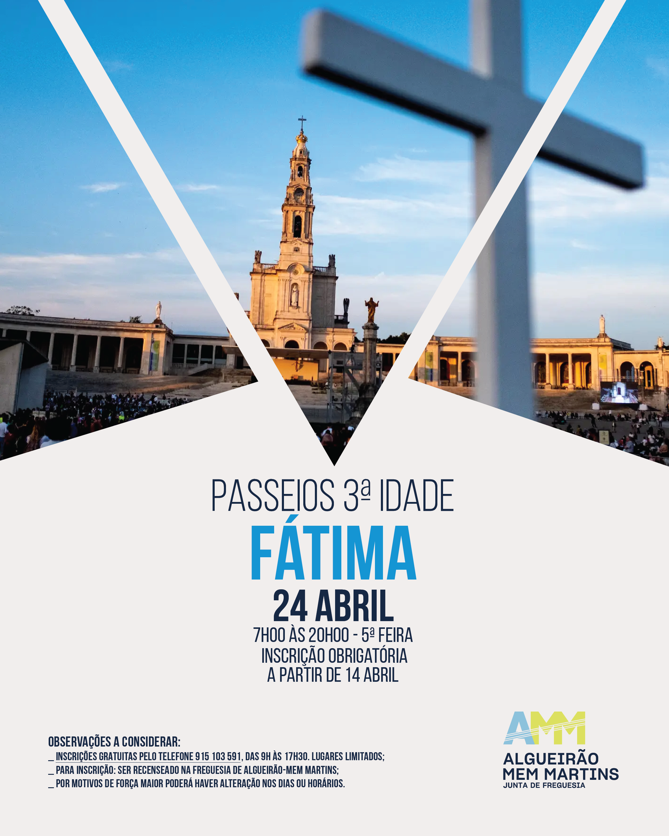 Dia 24 de abril, terça-feira, a JFAMM vai realizar um passeio ao Santuário de Fátima.