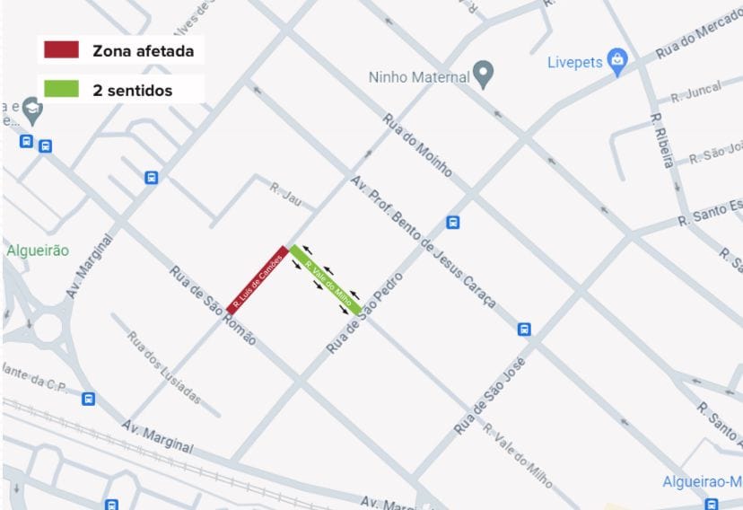 É autorizado o acesso a residentes, empresas localizadas no troço em obra e veículos prioritários (de emergência e de polícia).