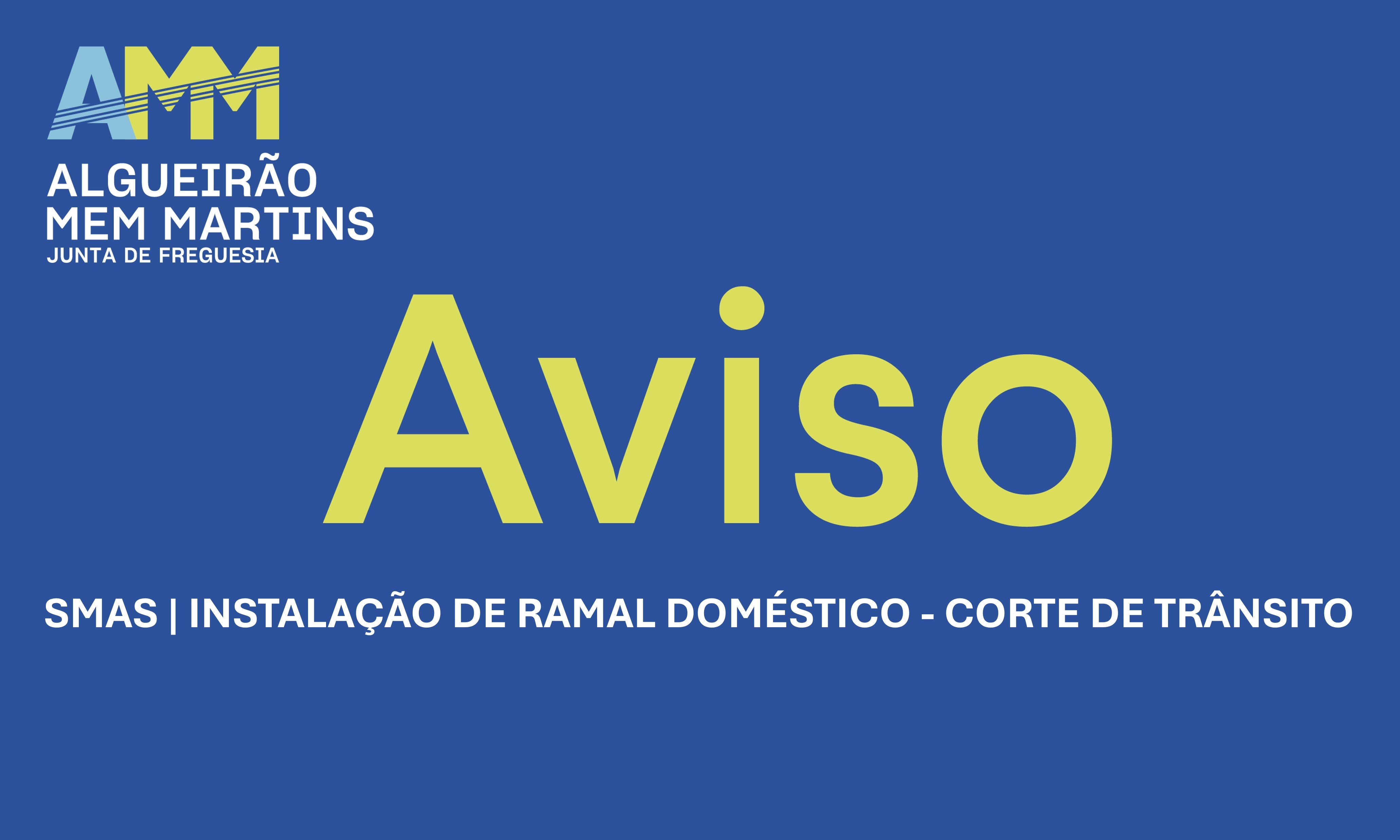 Os Serviços Municipalizados de Sintra informam que, devido a trabalhos de reparação de ramal doméstico, proceder-se-á ao corte do trânsito no dia 02 de maio (quinta-feira), das 08h00 às 20h00 na Rua Luís de Camões (troço entre a Rua de São Romão e a Rua Vale do Milho).